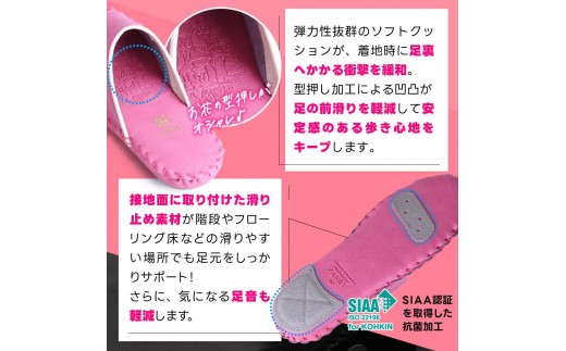 ●足の前滑りを軽減する型押し加工を中敷に施しています