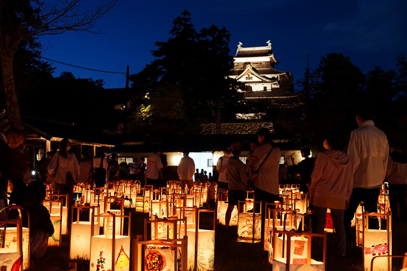 秋:松江城周辺がライトアップされる水燈路、日本最大級の鼕行列が見もの!干し柿すだれは秋の風物詩です。