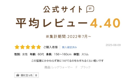 さらに、就寝時に着用すると朝方、脚がこわばって急に飛び起きる事が減ったり、立ち仕事やご旅行時にも欠かせないと大好評です。