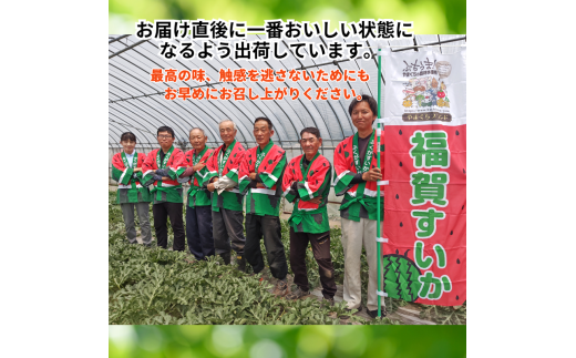 標高400メートルの冷涼な盆地で育つ「福賀すいか」は、シャリっとした食感と濃厚な甘さで、夏を満喫できます。