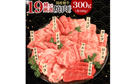 (ロース、サーロイン、バラ、外モモ、内モモ、ランプ、カイノミ、イチボ、カルビ、ミスジ、トンビ、ザブトン、上ミスジ、ヒウチ、マルシン、ハバキ、ウデサンカク、フランク、カメノコから3種)