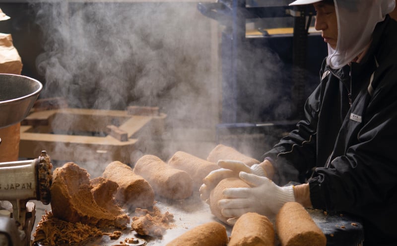 セルフビルドの蔵には薪を焚いて蒸し上げる大豆や米の豊かな香りと湯気が立ち昇ります。