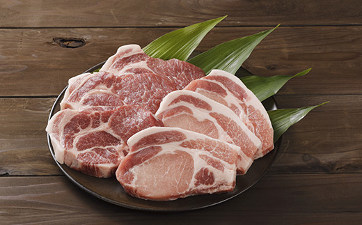 「脂の甘みと旨味が抜群」しまんと米豚背ロースと、「うま味があふれ出る」しまんと米豚肩ロースをそれぞれ150g3枚をセットにしてお届けします。