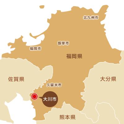 福岡県大川市は、福岡県の南部に位置し筑後川に沿っています。