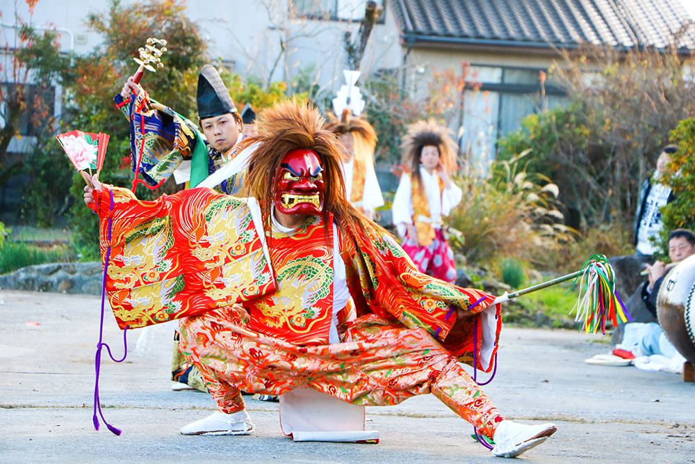 神幸祭と呼ばれる春祭では、花盛りの中で大胆に宙を舞う湯立神楽も奉納されます。